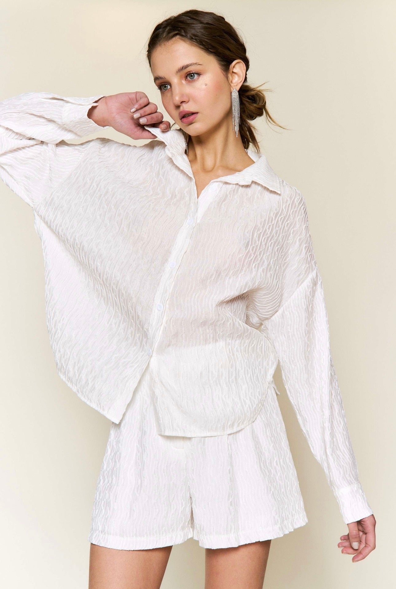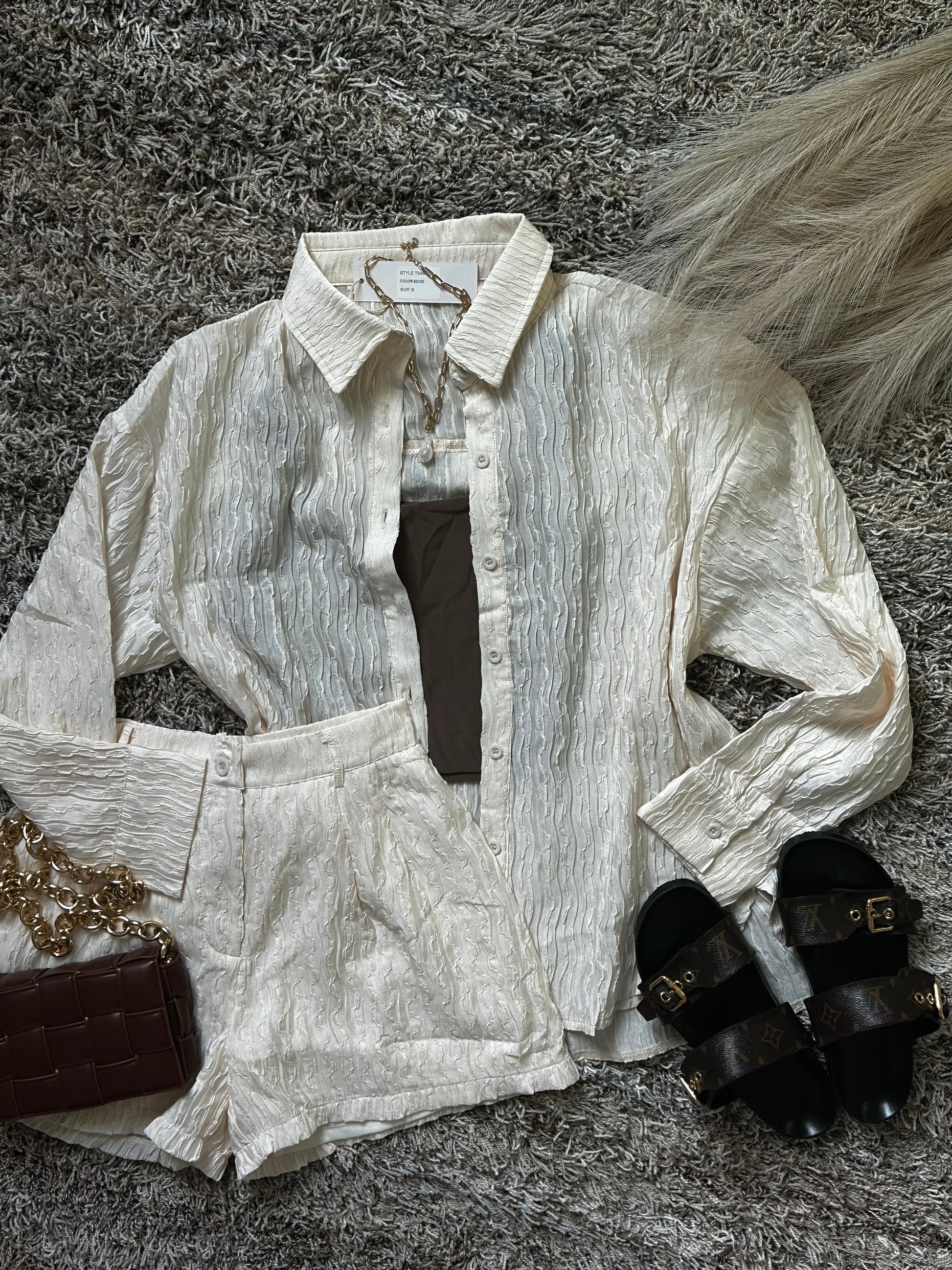 100%POLYESTERThe Angela set is the perfect combination of style and practicality. This set features an elegant design with intricate detail, and is lightweight for easy wear. Add to your wardrobe with this beautiful set today!