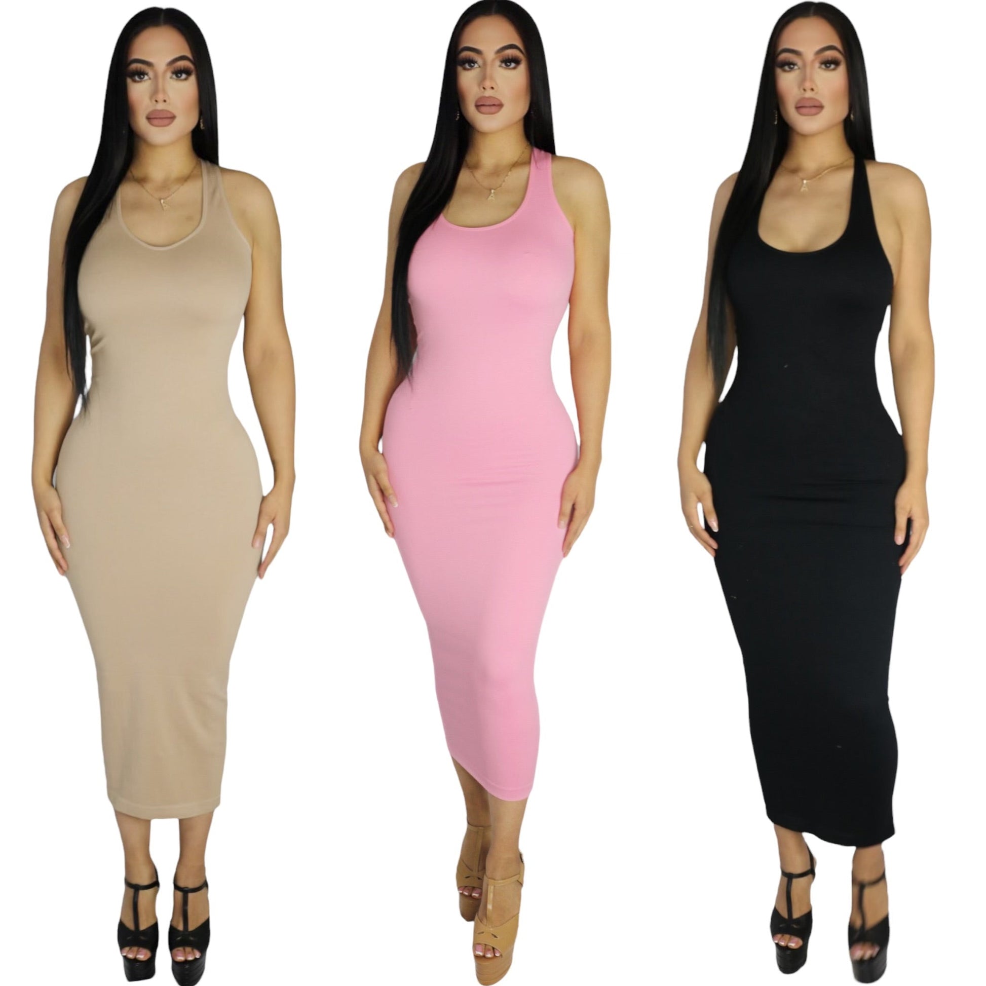 Racer back body con sleeveless long dress