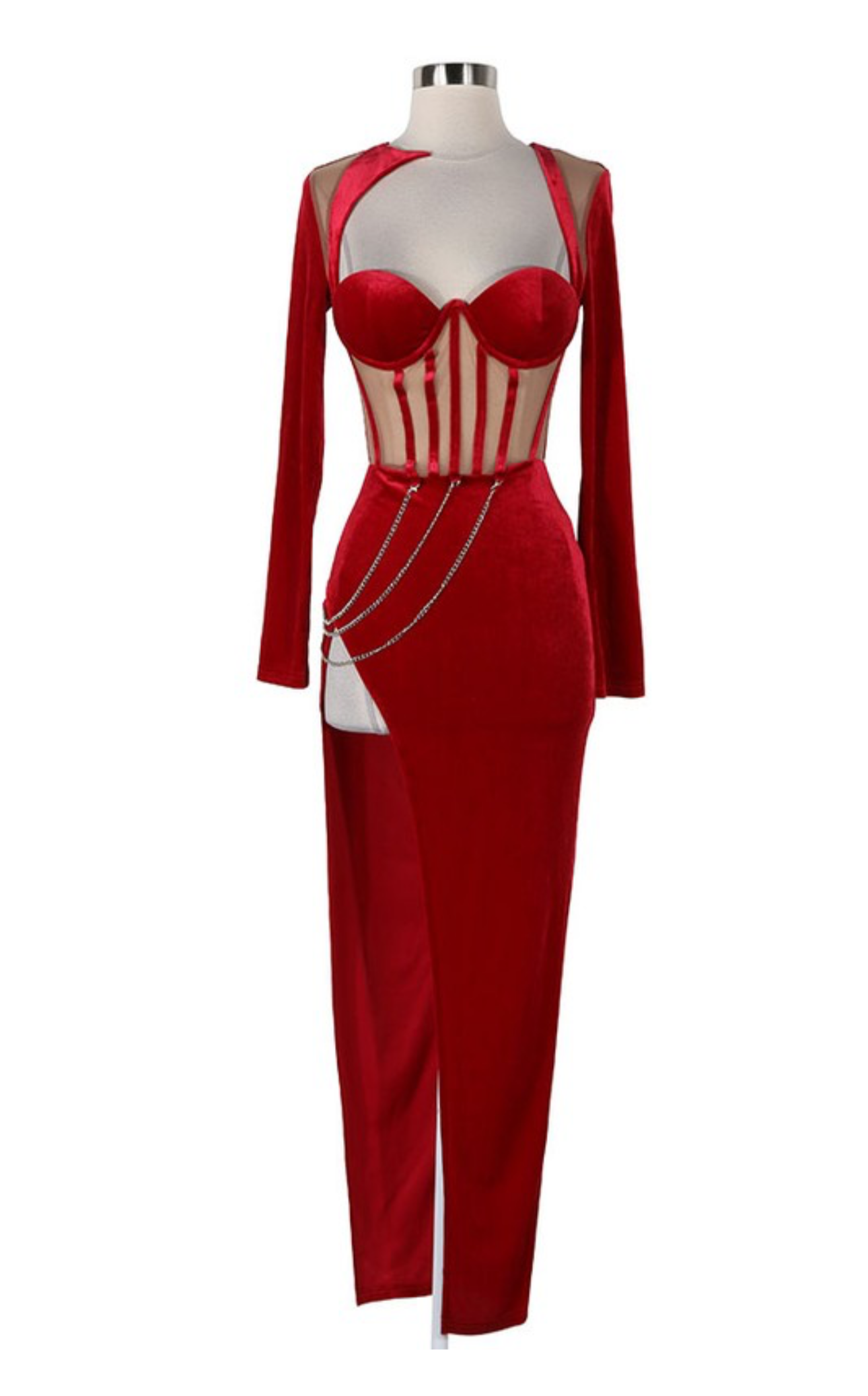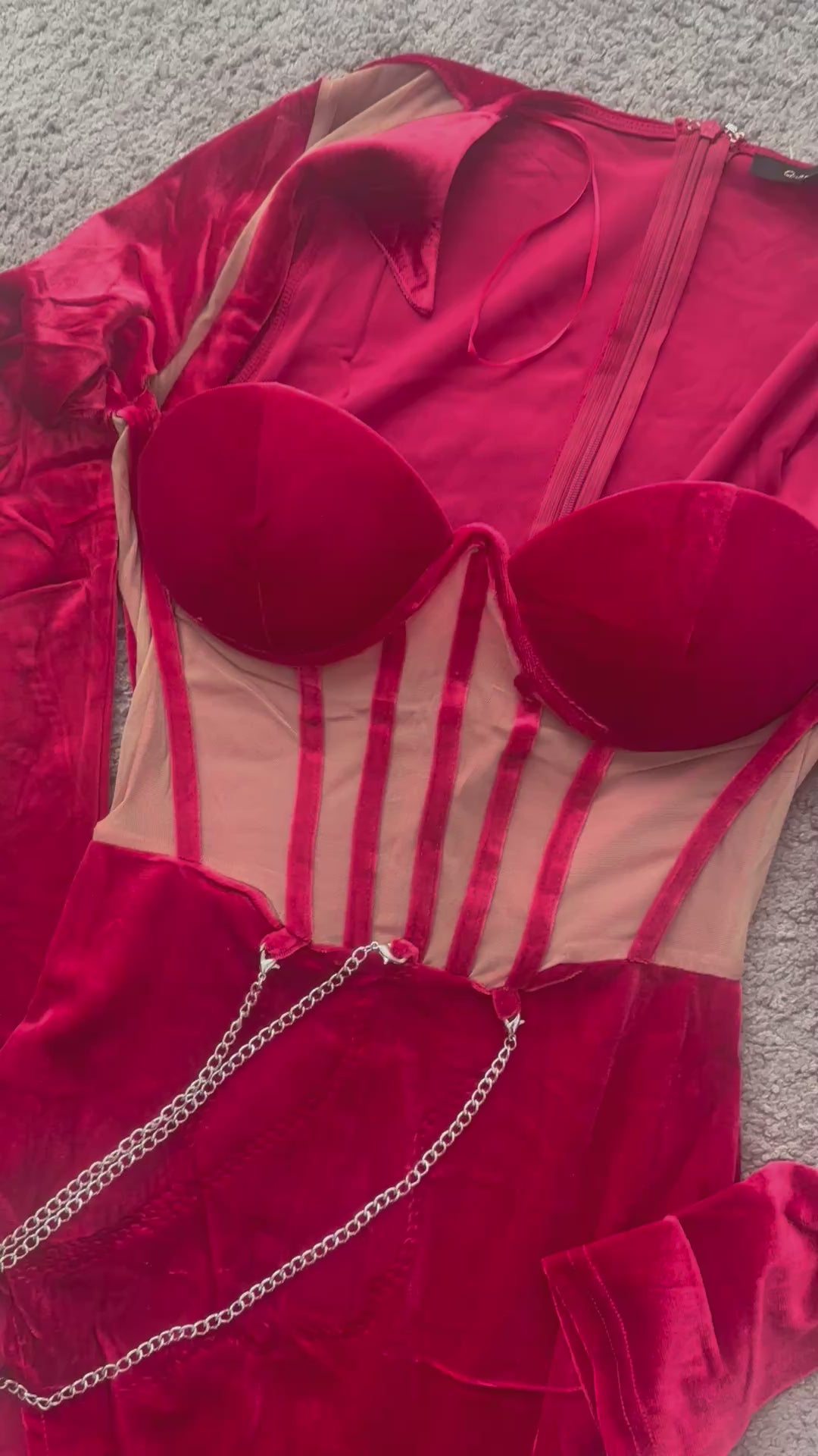 Sexy rStep out in style with the Fer dress. This sultry red velvet dress will turn heads with its bold color and sexy silhouette. Perfect for a night out on the town or a special event, the Fer dress is sure to make you feel confident and stunning. Experience the luxurious feel of velvet while making a statement in this eye-catching dress.