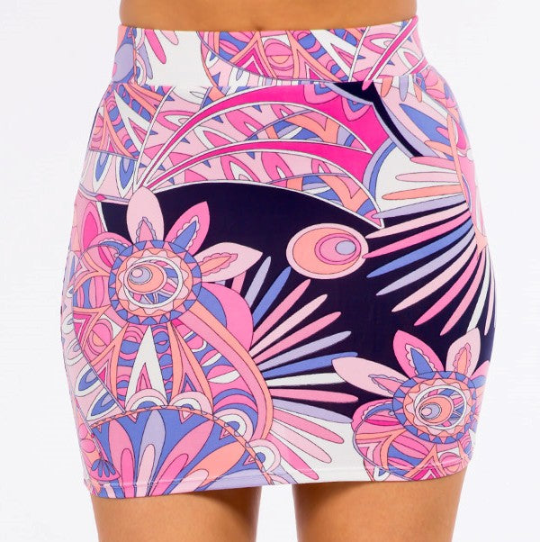 STRETCH PRINT CLASSIC MINI SKIRT WITH ELASTIC WAIST
