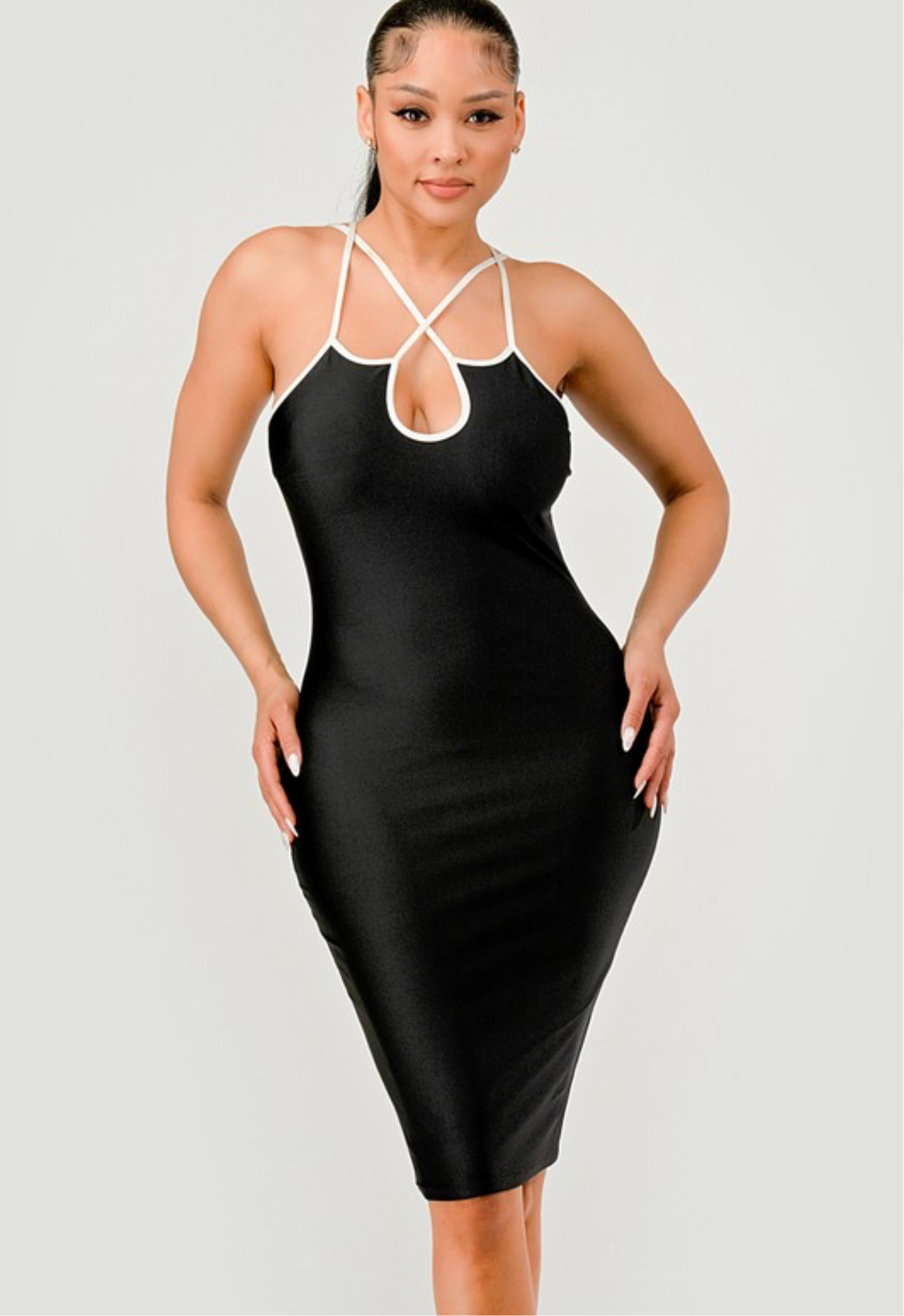 Joseline dress is a must-have for any fashion-forward individual. Featuring a stunning white bodycon design with contrasting details, this dress is perfect for making a statement.Elevate your wardrobe with the Joseline dress.