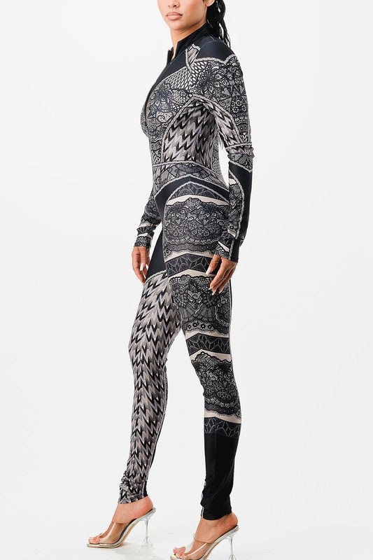* ZIP-UP STYLE stretched jumpsuit * High neck with long sleeve